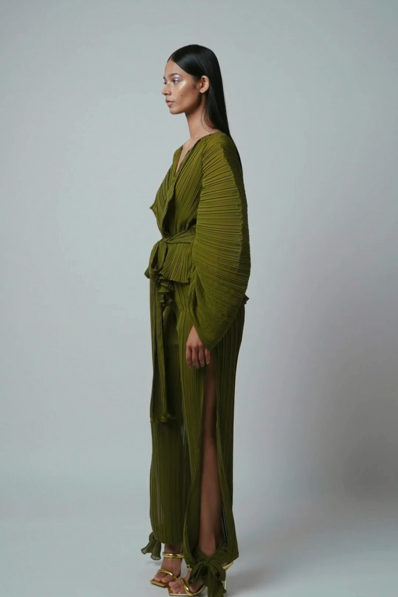 Wrap top with sash & statement sleeves